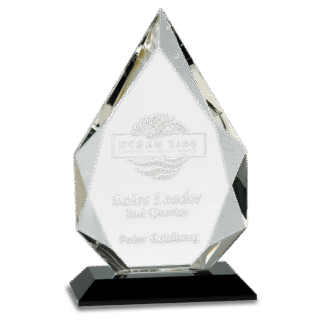 Engraved Personalized 10 1/2″ 7″ Crystal Diamond on a Clear Crystal Base.