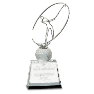 11″ Silver Metal Golfer Silhouette on a Crystal Golf Ball & Base