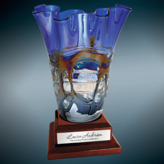 14 1/4″ Art Glass Vase with Black Royal Piano Finish Base