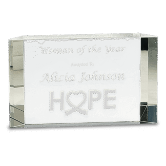 Engraved Personalized 6 1/2″ Crystal Triangle on a Black Crystal Base.