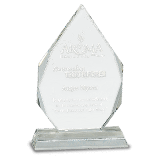 Engraved Personalized 9 1/2″ Crystal Faceted Obelisk on a Blue Crystal Base.