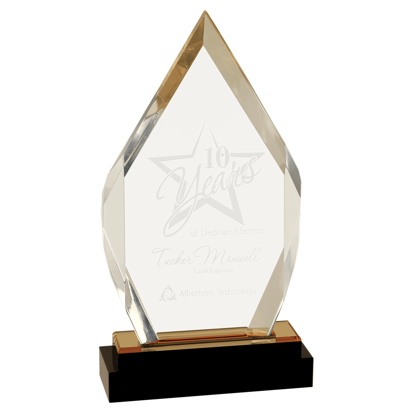 Engraved Personalized 9″ Gold Fusion Diamond Impress Acrylic with Black Crystal Base – custom made just for you.