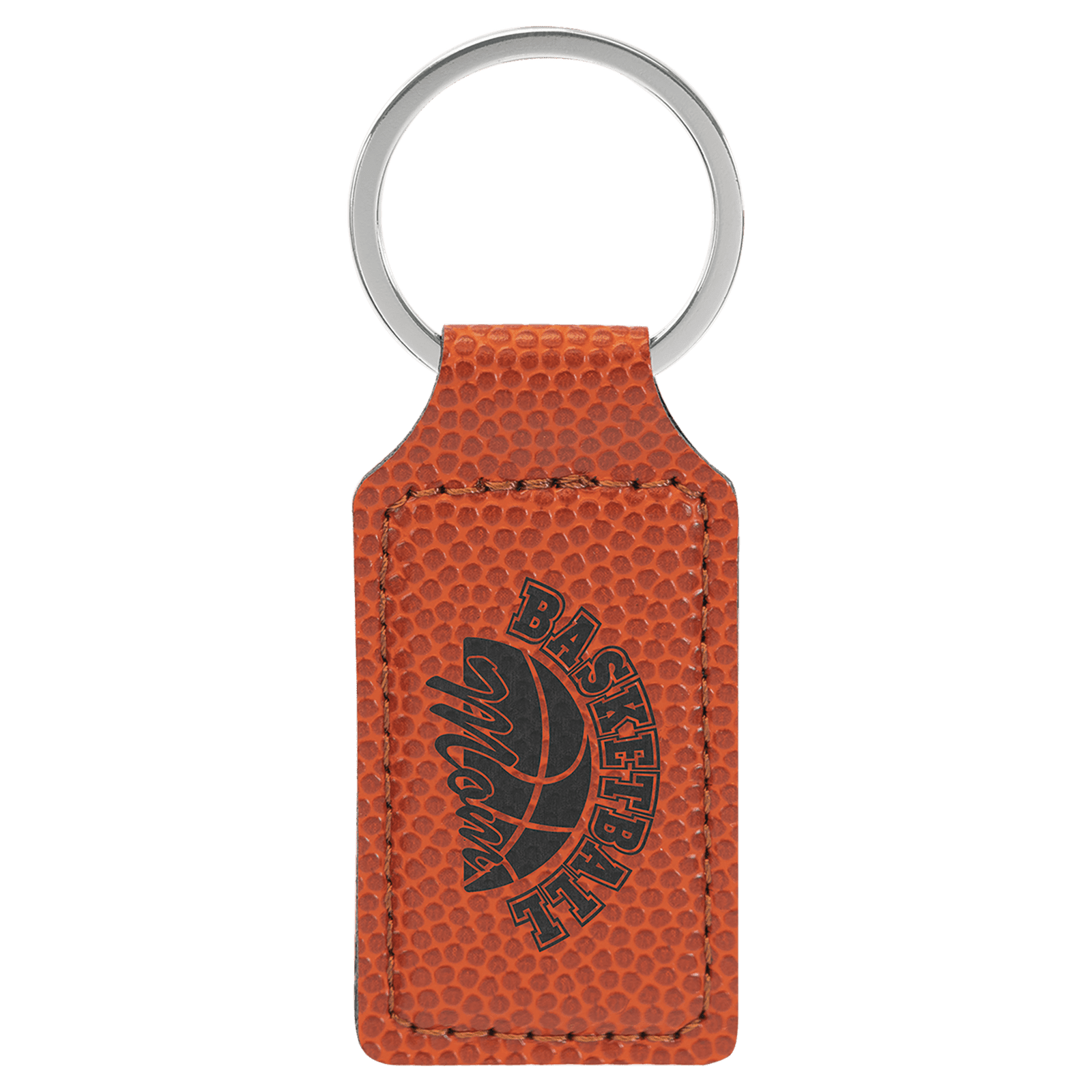 2 3/4″ x 1 1/4″ Basketball Laserable Leatherette Rectangle Keychain
