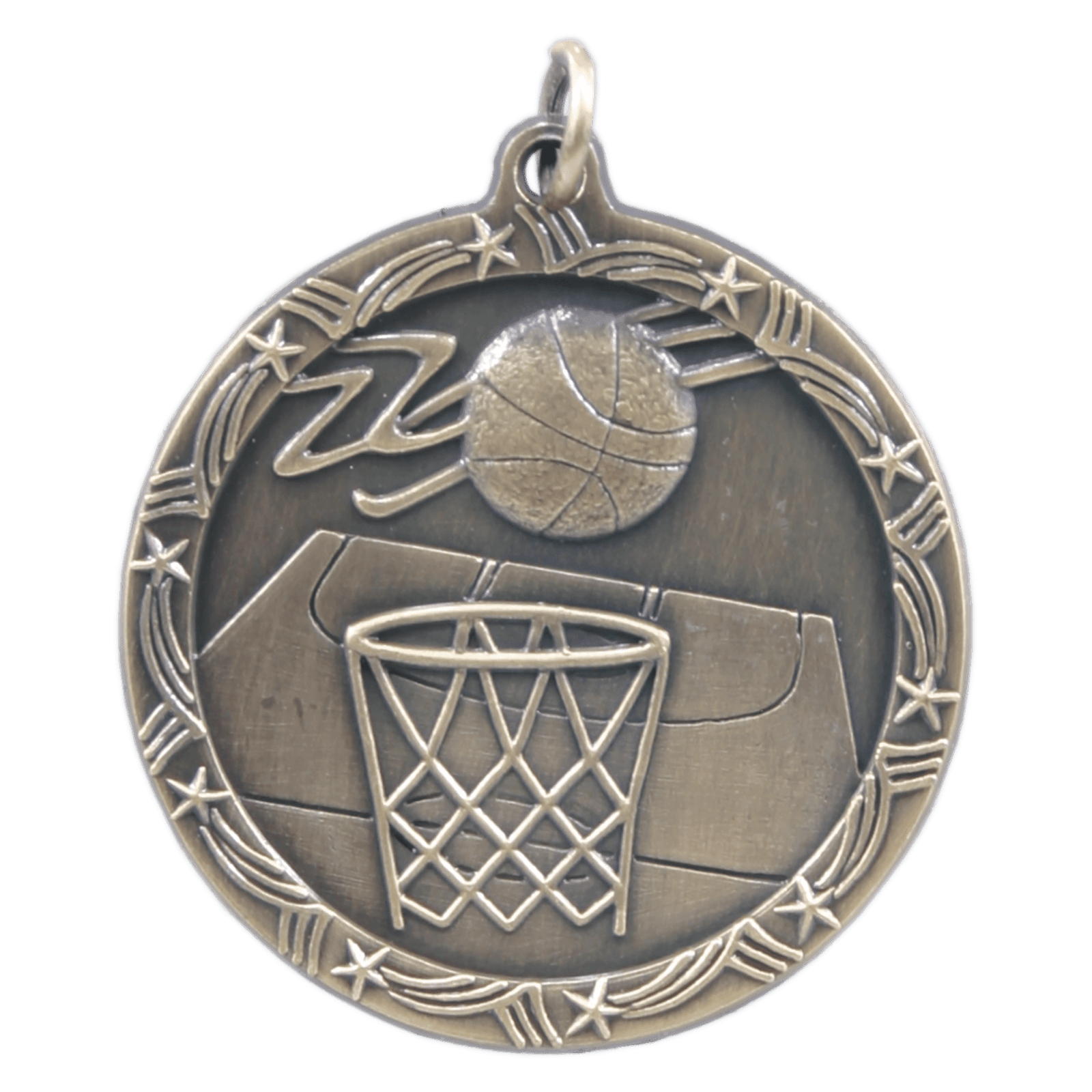 1 3/4″ Antique Gold Basketball Shooting Star Medal