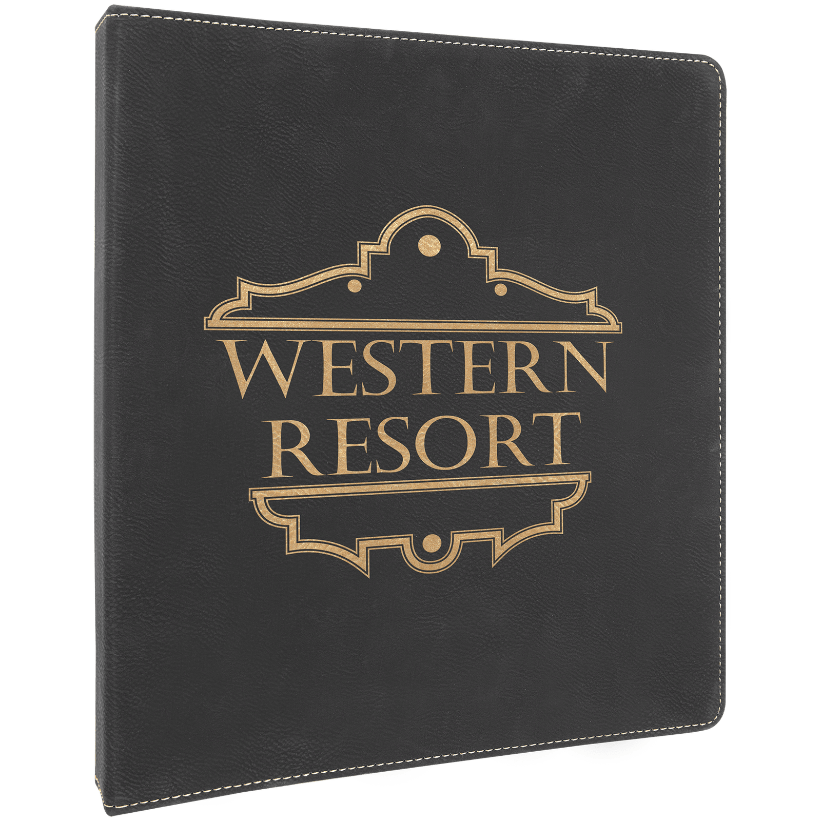 10 1/2″ x 11 1/2″ Black/Gold Laserable Leatherette 3 Ring Binder with 1″ Slant D Rings