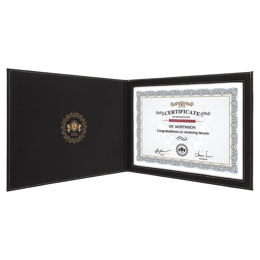 9″ x 12″ Black/Gold Laserable Leatherette Certificate Holder for 8 1/2″ x 11″