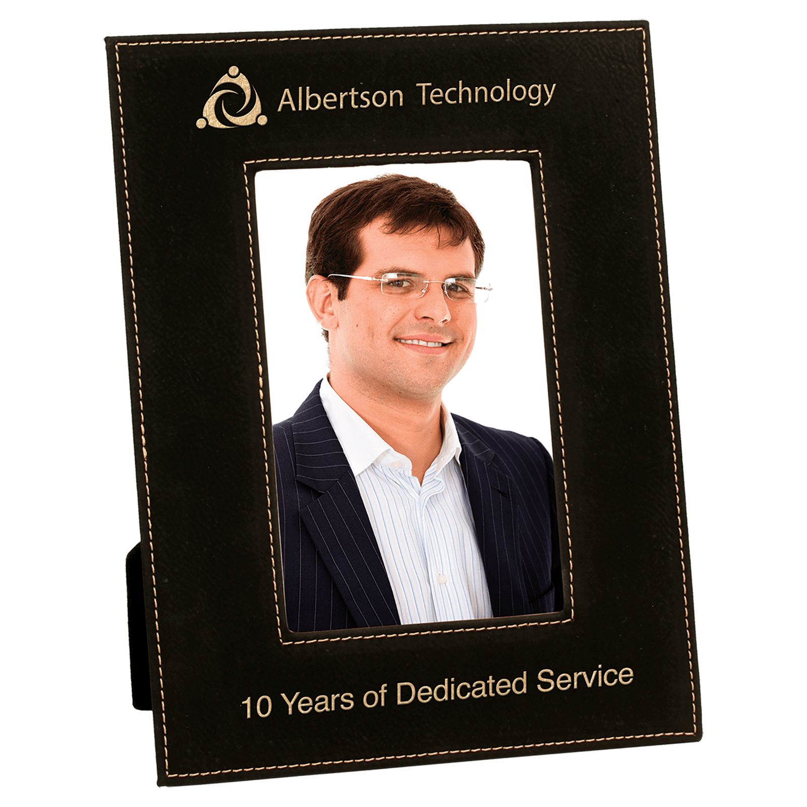 4″ x 6″ Black/Gold Laserable Leatherette Photo Frame