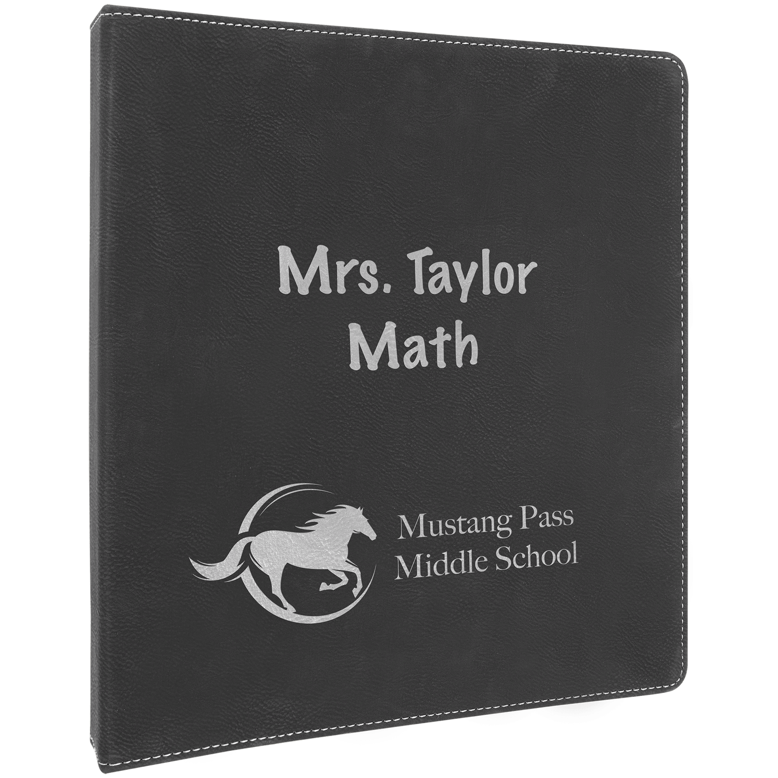 10 1/2″ x 11 1/2″ Black/Silver Laserable Leatherette 3 Ring Binder with 1″ Slant D Rings