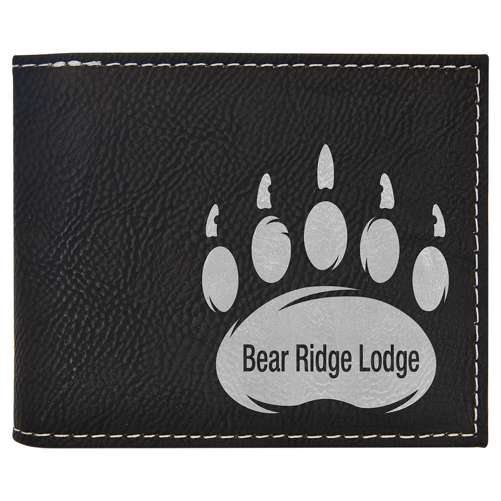 Black/Silver Laserable Leatherette Bi-Fold Wallet w/Flip ID Display