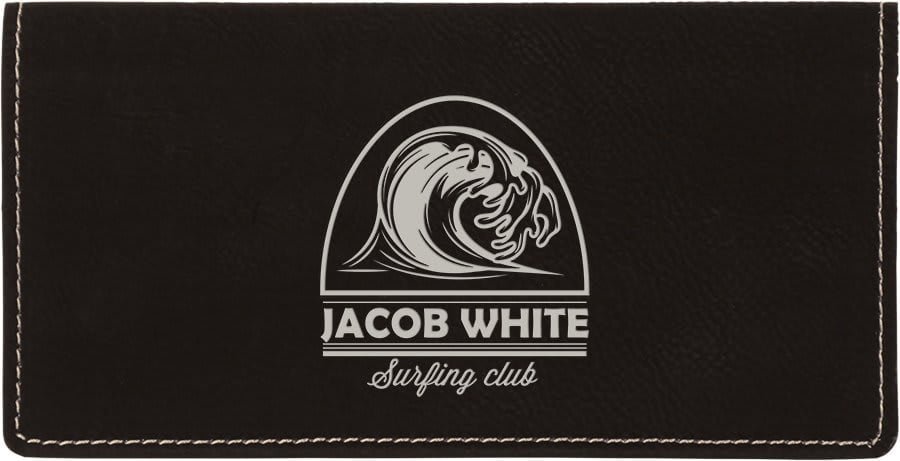 6 3/4″ x 3 1/2″ Black/Silver Laserable Leatherette Checkbook Cover