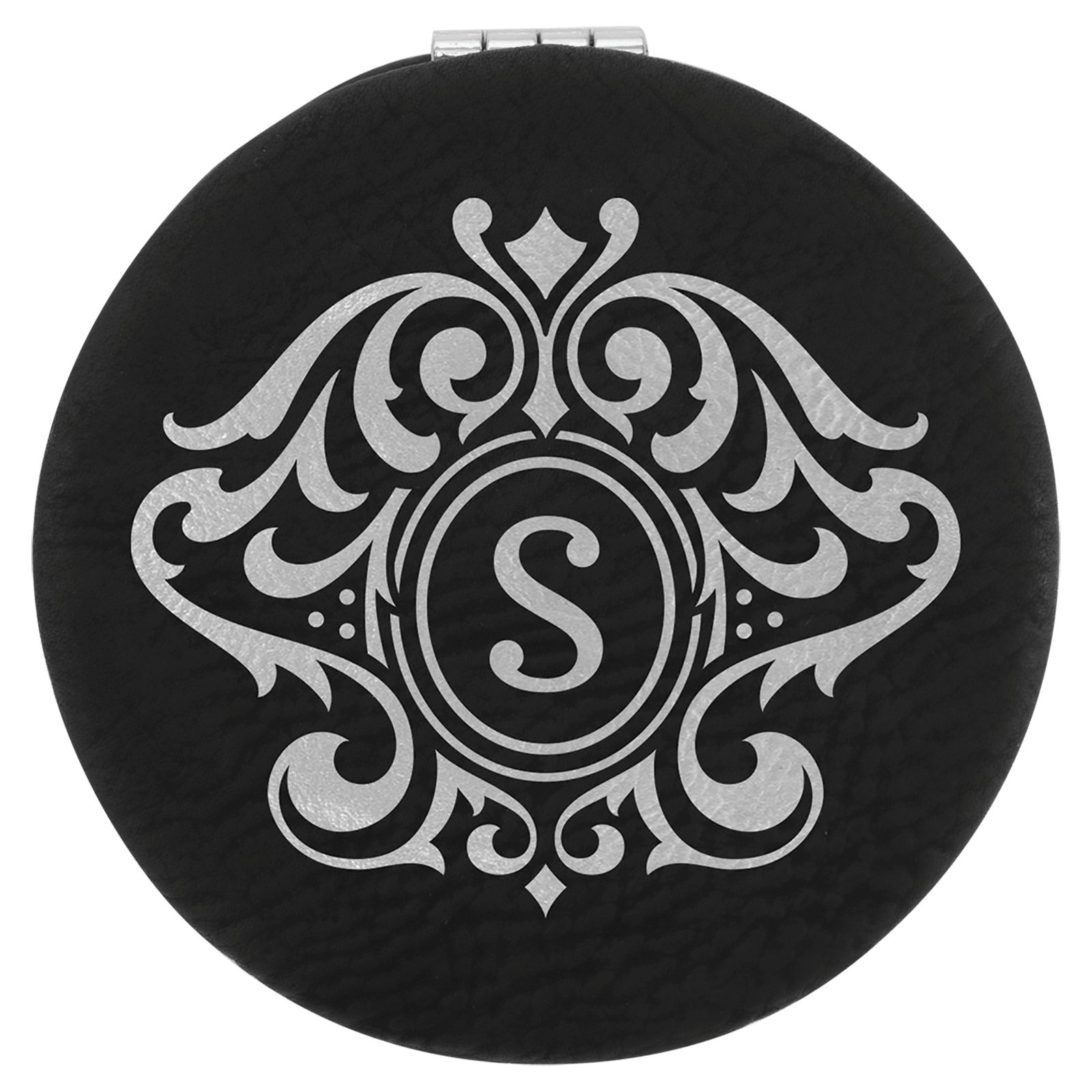 2 1/2″ Black/Silver Laserable Leatherette Compact Mirror