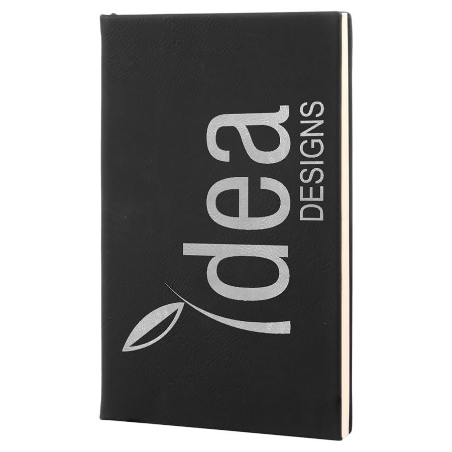 5 1/4″ x 8 1/4″ Black/Silver Laserable Leatherette Journal with Lined Notepad