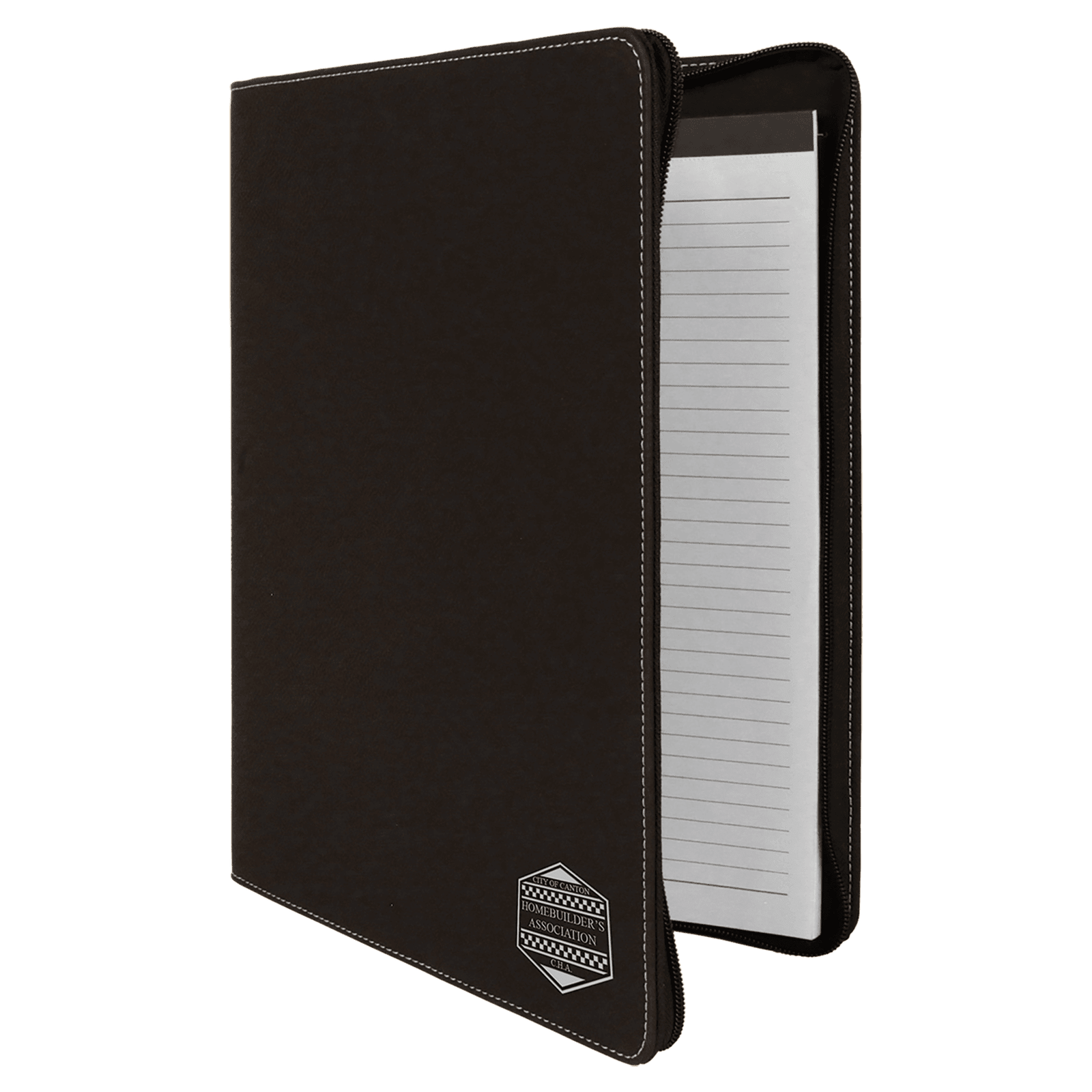 9 1/2″ x 12″ Black/Silver w/Zipper Laserable Leatherette Portfolio with Notepad
