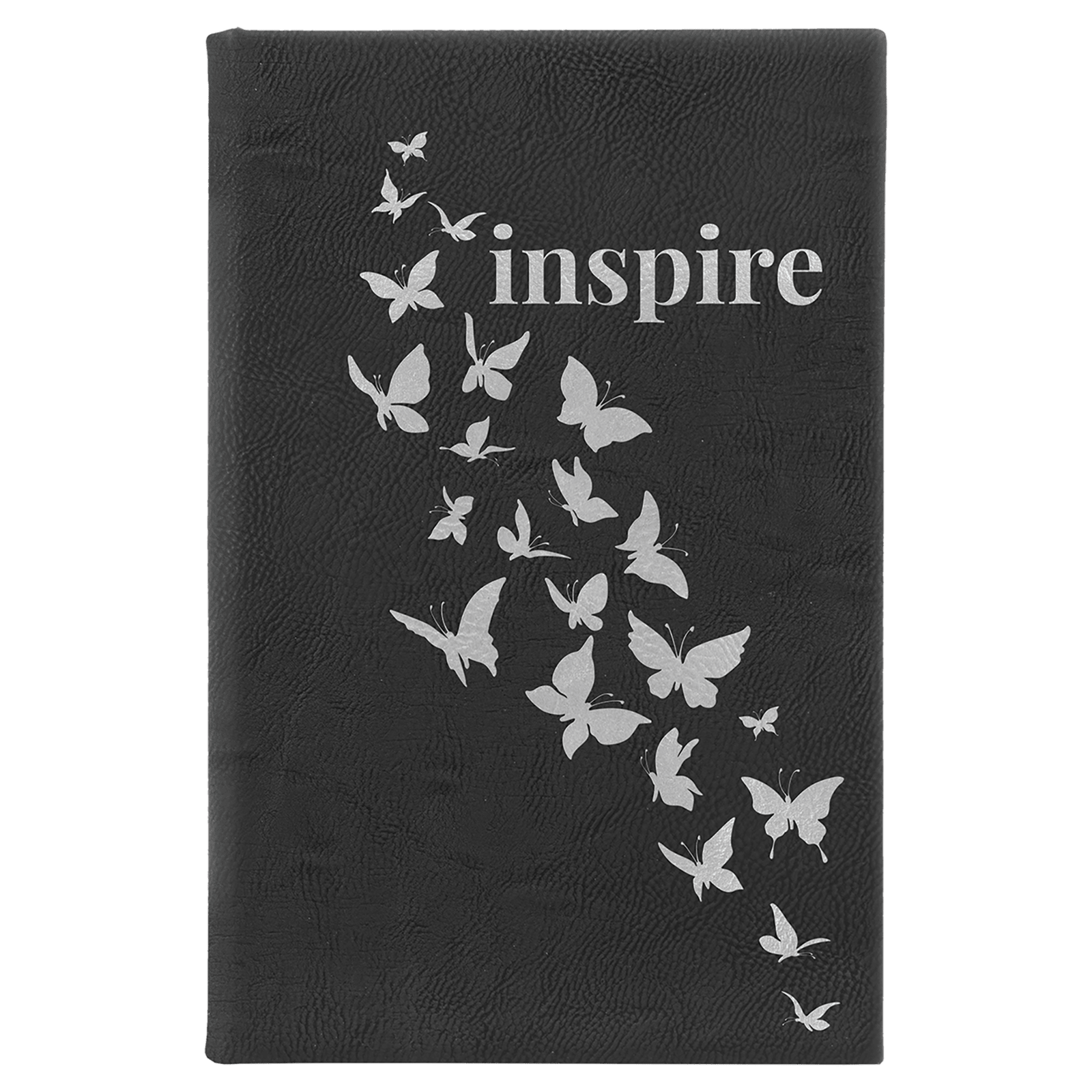 5 1/4″ x 8 1/4″ Black/Silver Laserable Leatherette Sketch Book with Unlined Notepad