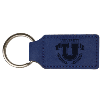 3″ x 1 3/4″ Blue/Black Laserable Leatherette Oval Keychain