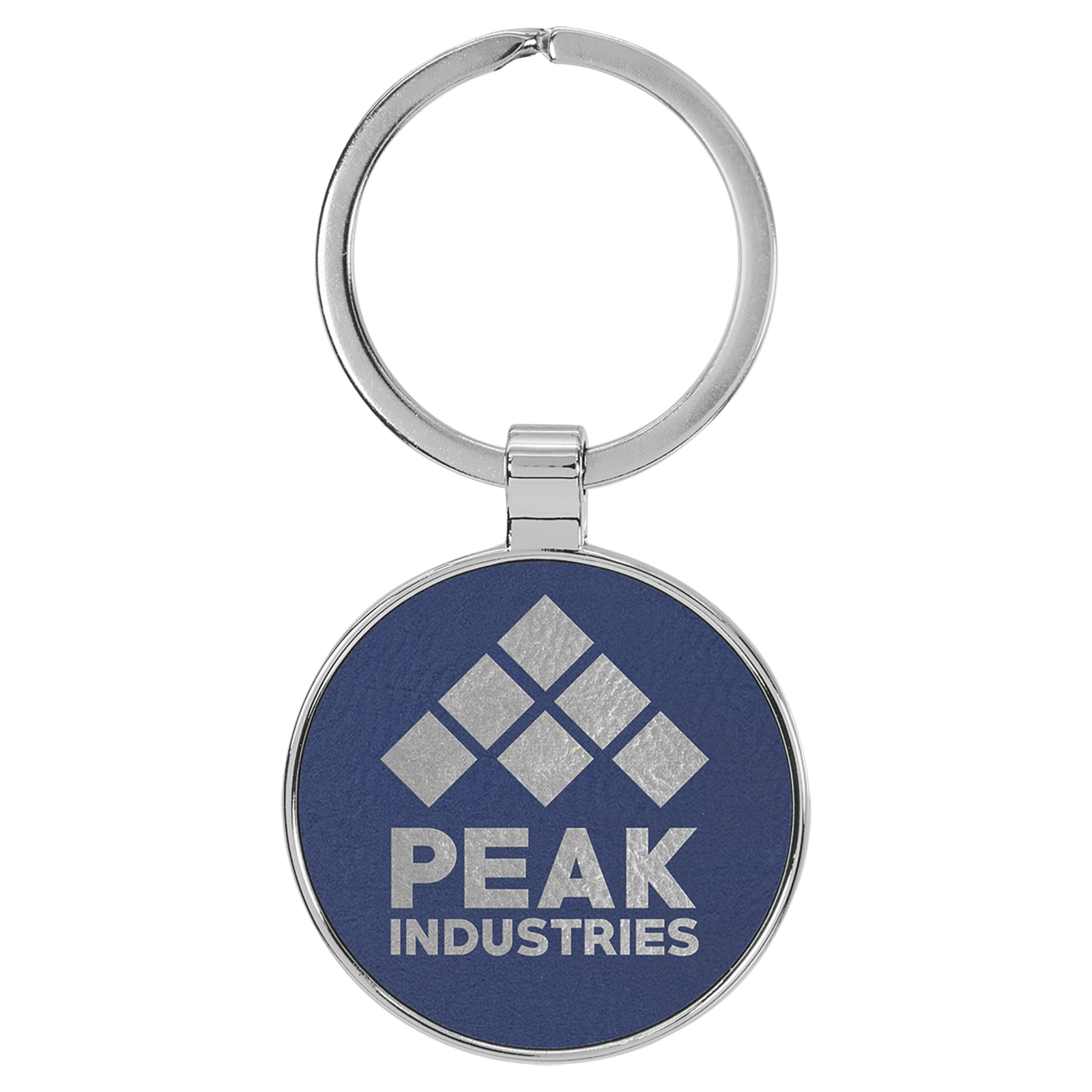 1 1/2″ Laserable Leatherette/Metal Blue/Silver Round Keychain