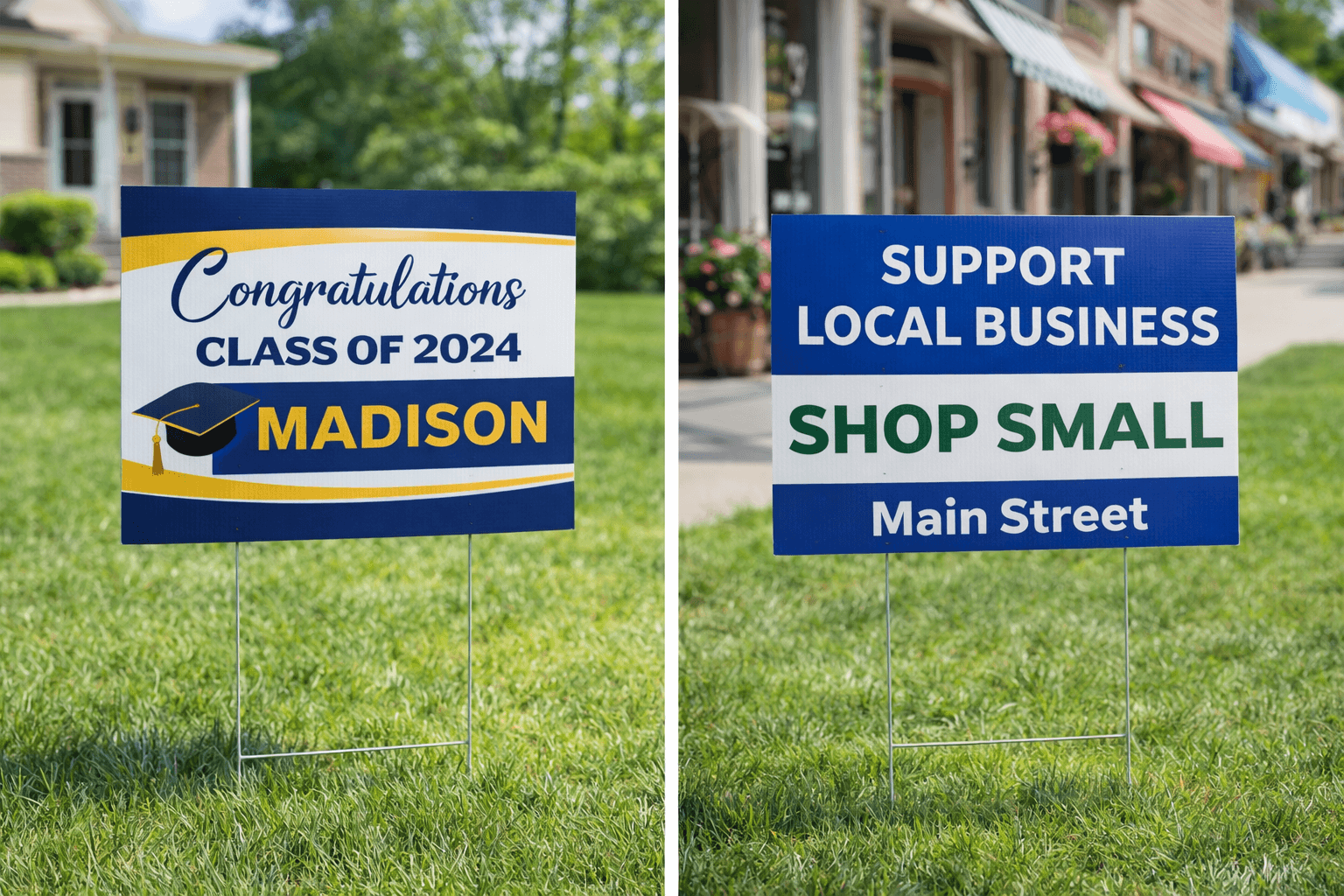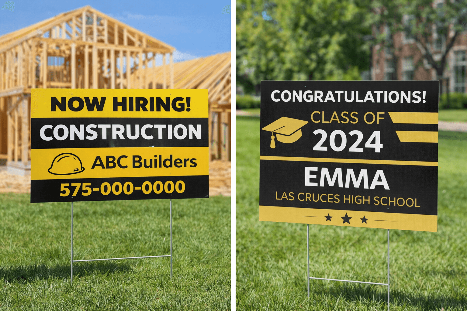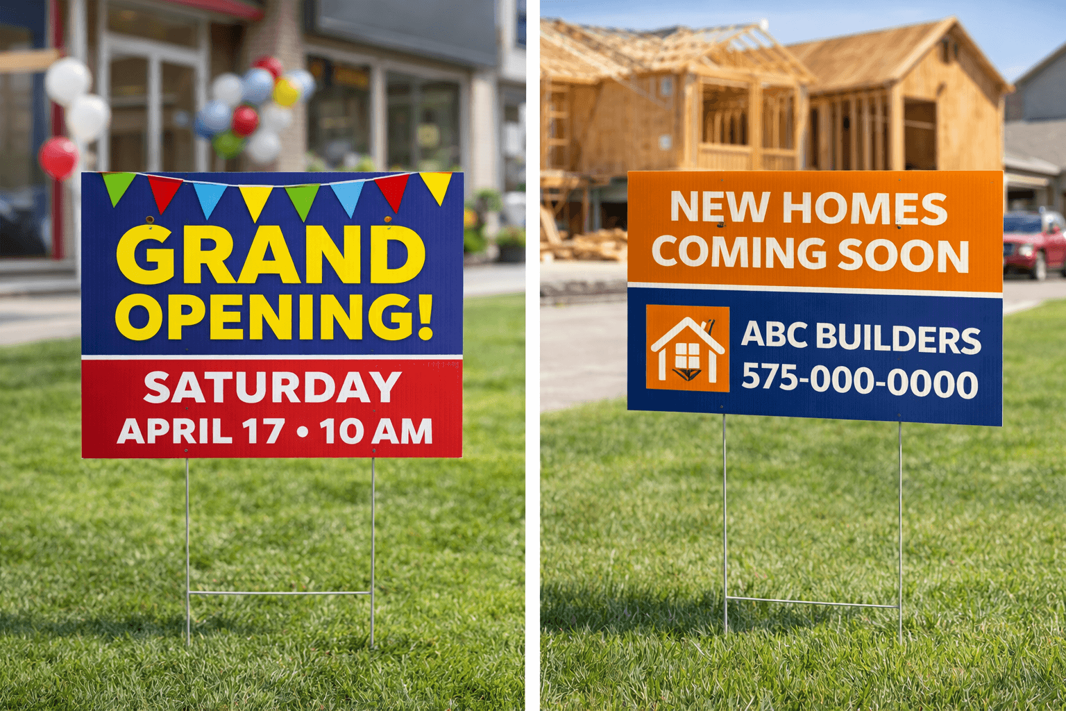 These signs serve multiple purposes. Whether you need a directional sign to guide guests or an event sign to attract attention, corrugated yard signs deliver the perfect solution. Their lightweight design makes them easy to transport and set up at any location.