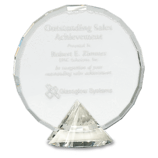 Engraved Personalized Crystal Diamond on Black Crystal Pedestal.
