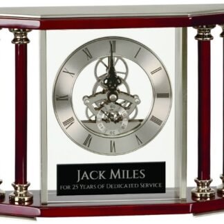 10 1/2″ x 6″ Executive Gold/Rosewood Piano Finish Clock w/2 Pens/Letter Opener
