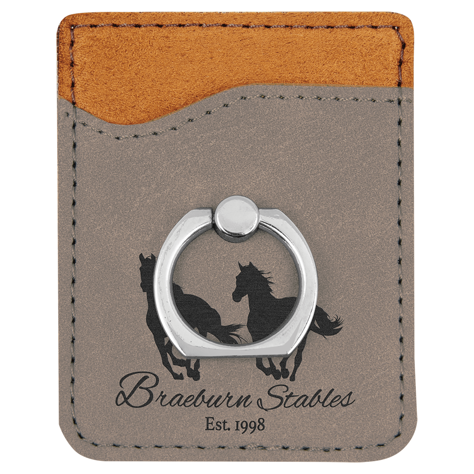 Gray Laserable Leatherette Phone Wallet with Silver Ring