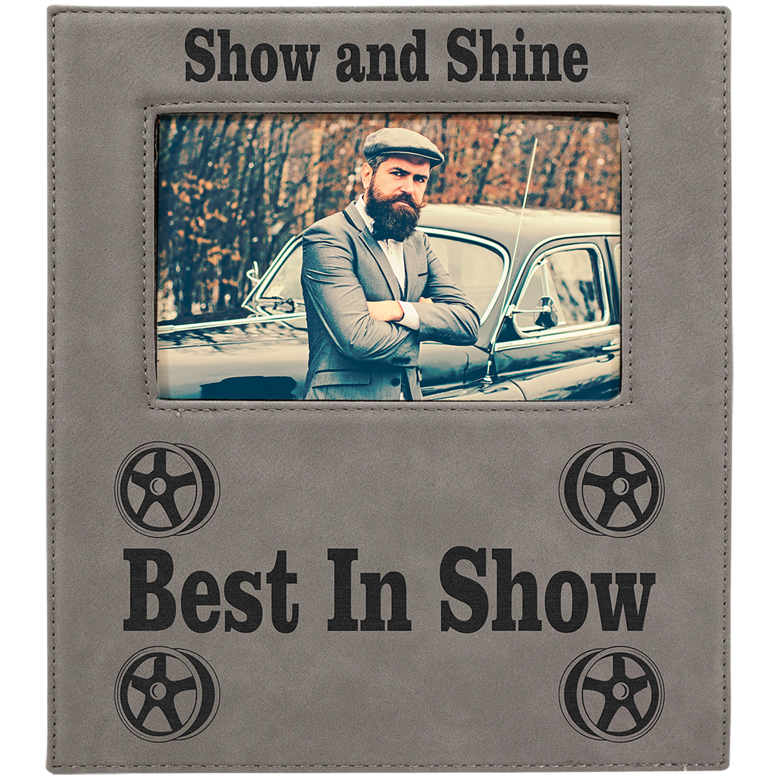 4″ x 6″ Gray Leatherette Photo Frame with 4 1/4″ x 7 7/8″ Engraving Area