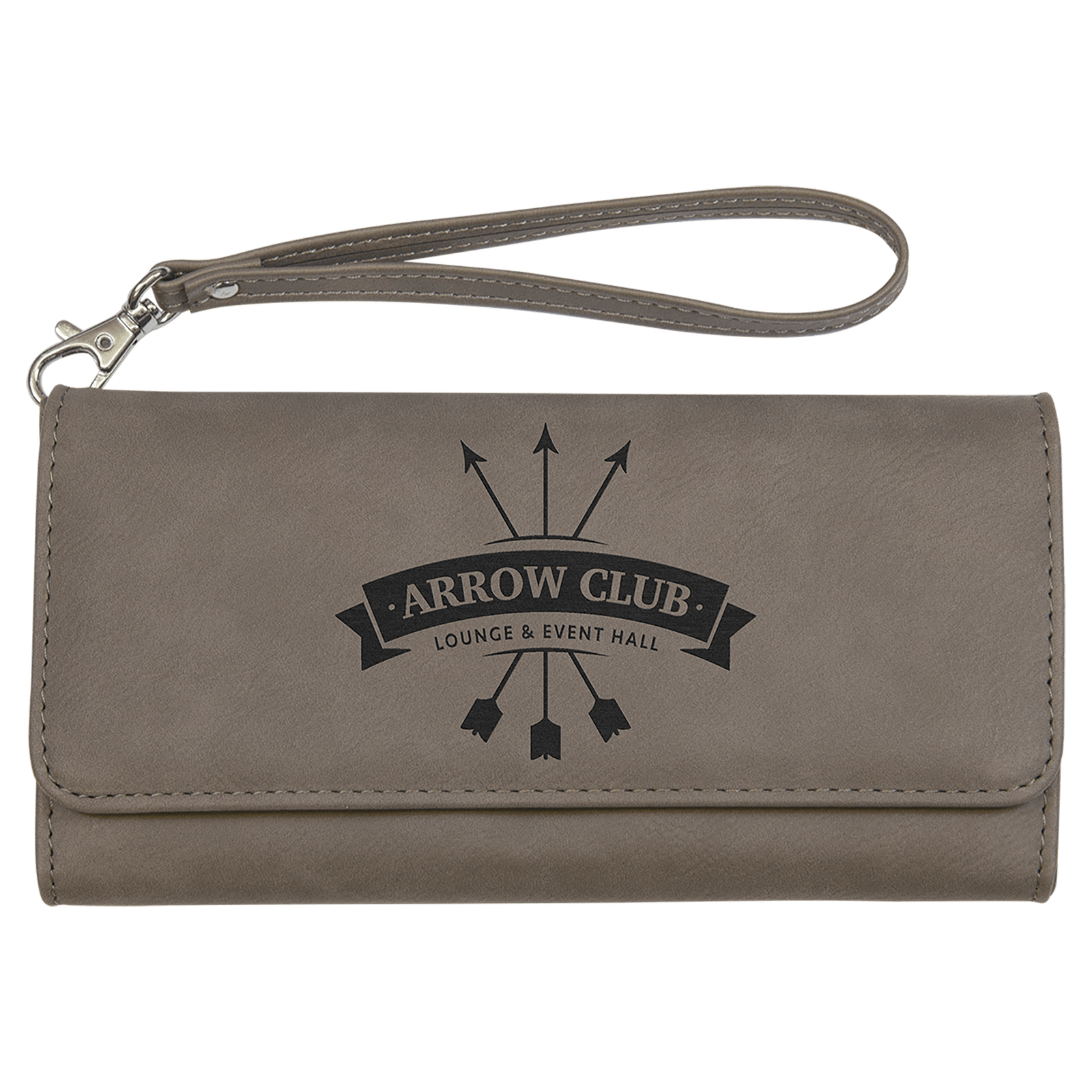 7 1/2″ x 4″ Gray Laserable Leatherette Wallet with Strap