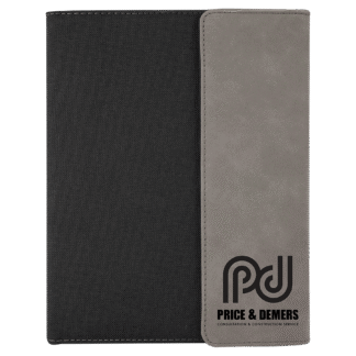 7″ x 9″ Black/Silver Laserable Leatherette /Gray Canvas Portfolio with Notepad