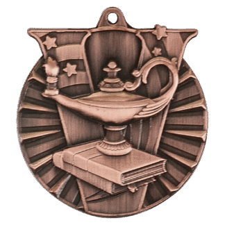 2″ Bright Gold Lamp of Knowledge Laserable BriteLazer Medal