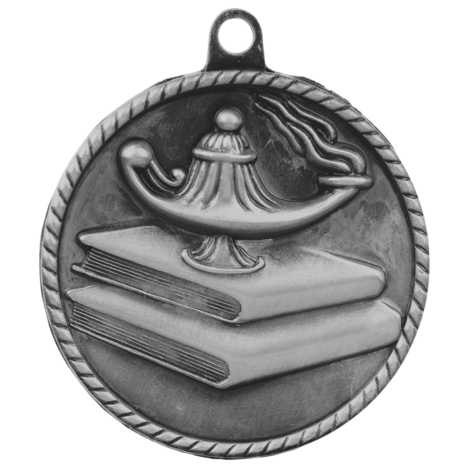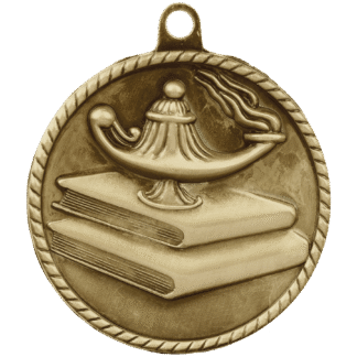 Engraved Personalized Lamp of Knowledge High Relief Medal-Silver – custom made just for you.Add your name, logo, or message.Fast local production from Trophies Etc.