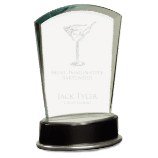 Engraved Personalized Large Jade Flame Metro Glass with Silver and Black Piano Finish Base.