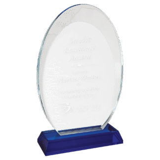 Engraved Personalized Large Oval Halo Glass with Black Base.