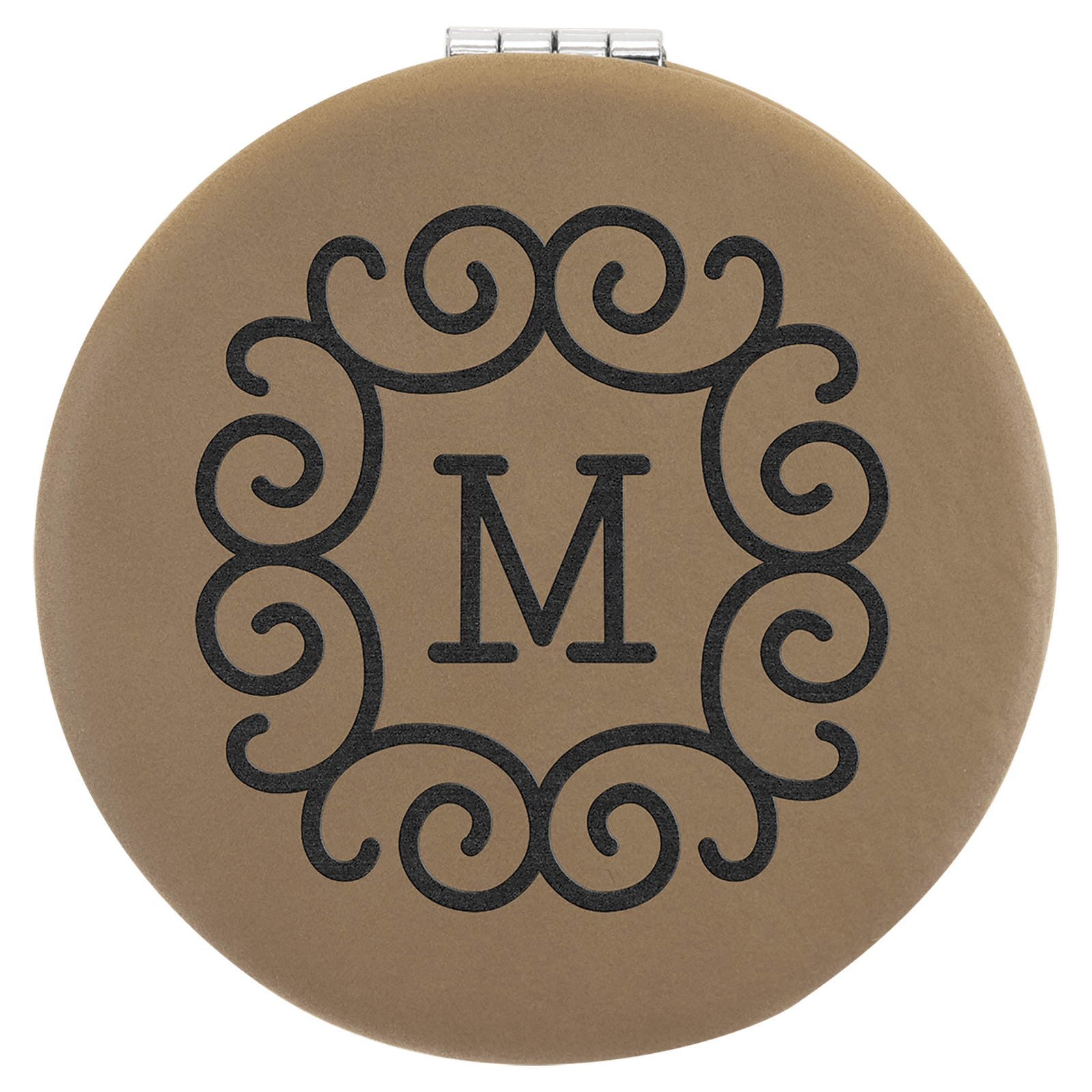 2 1/2″ Light Brown Laserable Leatherette Compact Mirror