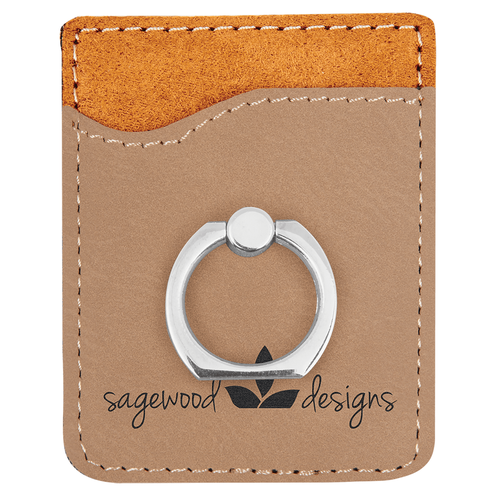 Light Brown Laserable Leatherette Phone Wallet with Silver Ring