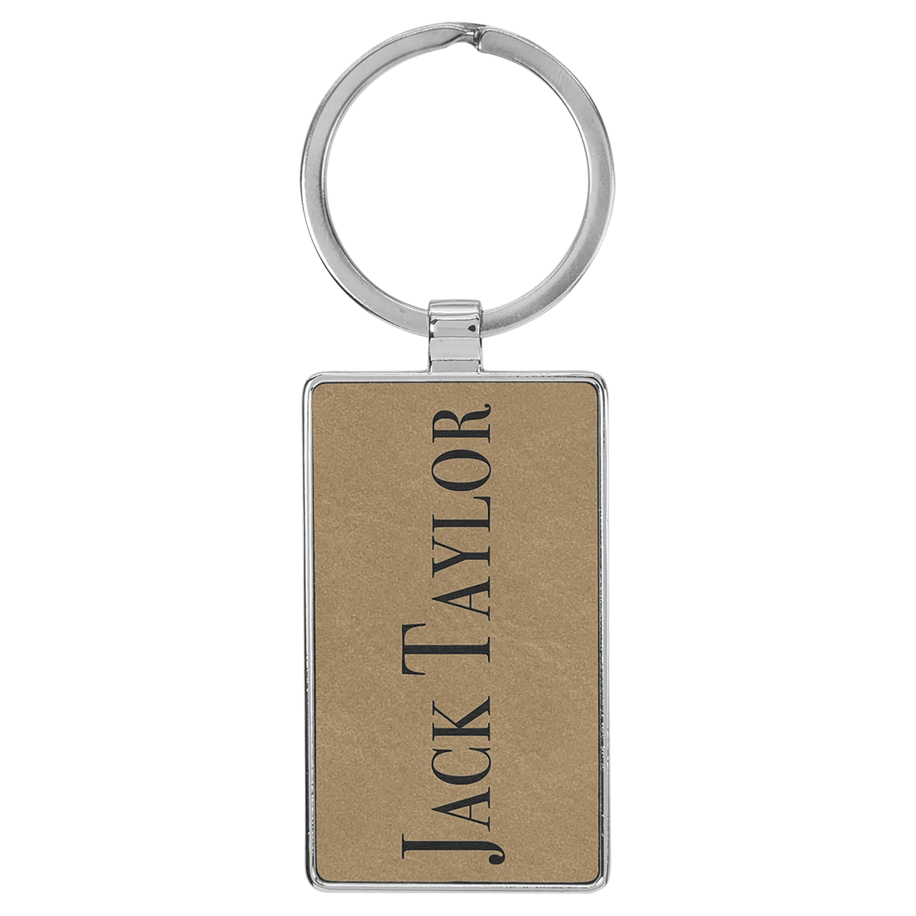 2 3/4″ x 1 1/4″ Laserable Leatherette/Metal Light Brown Rectangle Keychain