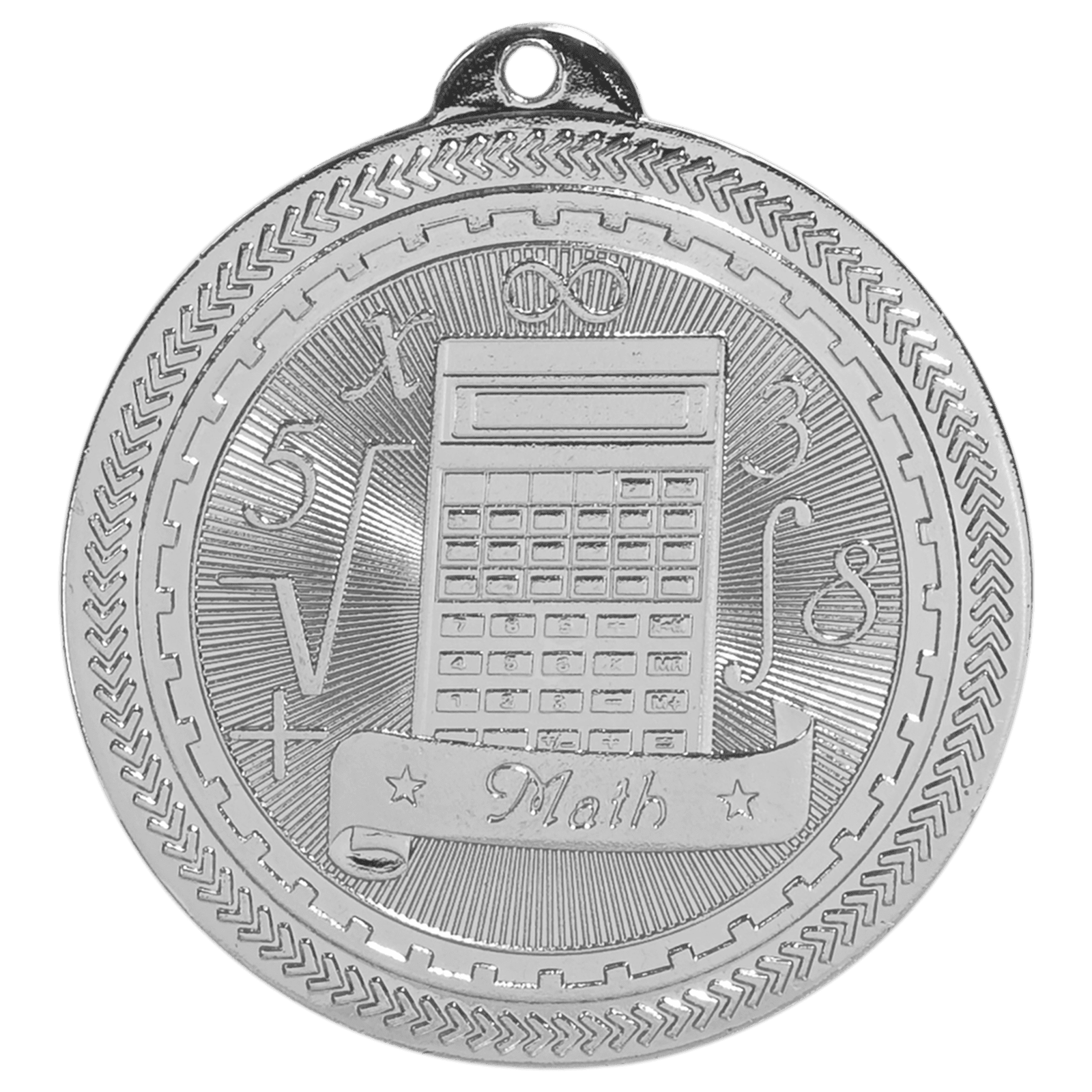 Engraved Personalized Math BriteLazer Medal-Silver – custom made just for you.Add your name, logo, or message.Fast local production from Trophies Etc.
