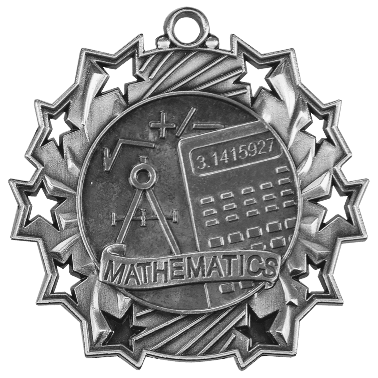 2 1/4″ Antique Silver Math Ten Star Medal