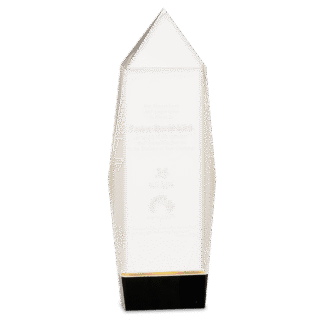 Engraved Personalized Medium Clear Crystal Facet Rectangle on Black Base.