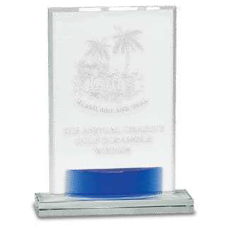 Engraved Personalized Medium Crystal Arch with Blue Accent.