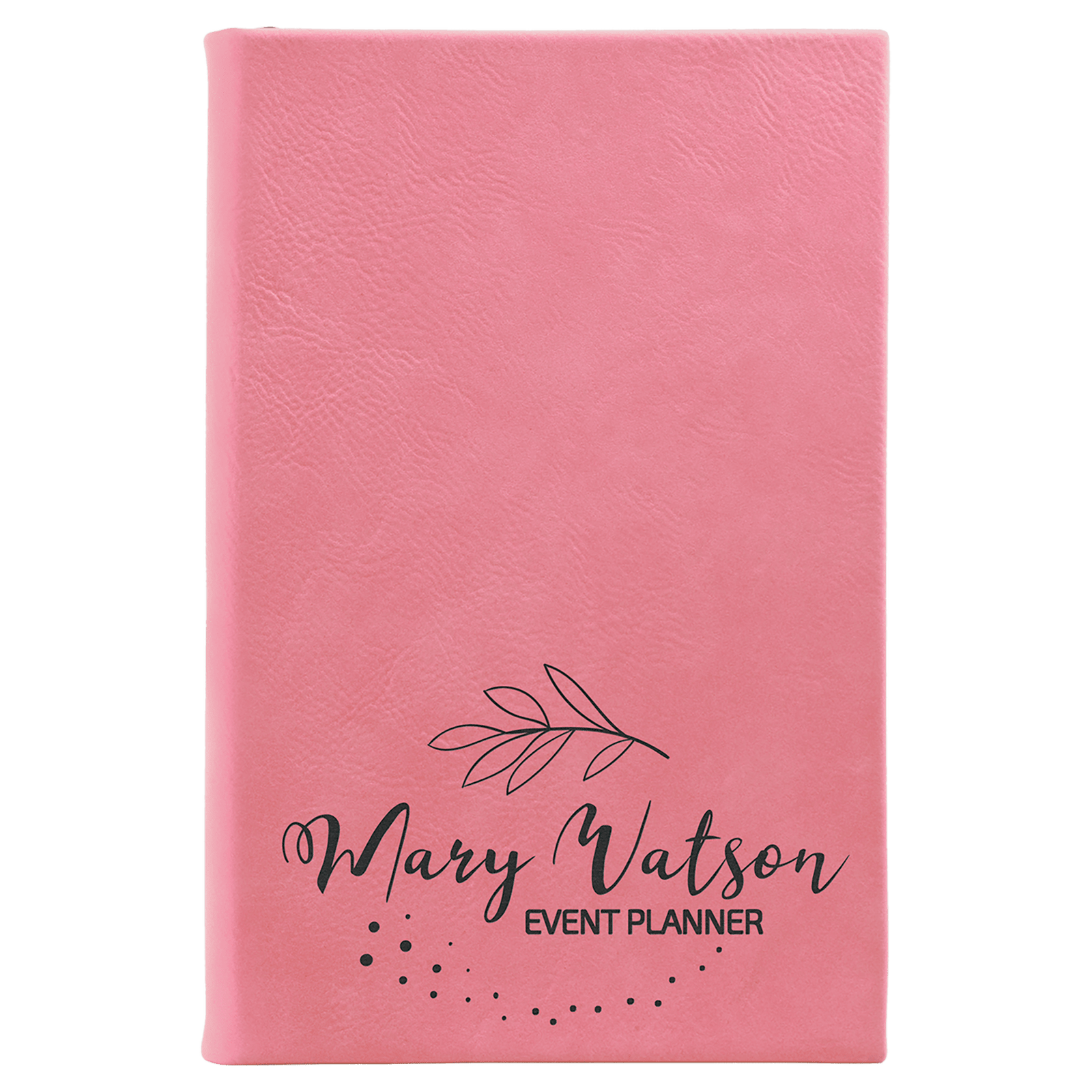 5 1/4″ x 8 1/4″ Pink Laserable Leatherette Sketch Book with Unlined Notepad