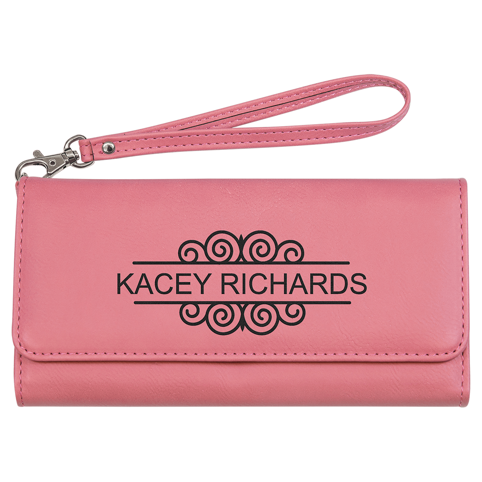 7 1/2″ x 4″ Pink Laserable Leatherette Wallet with Strap