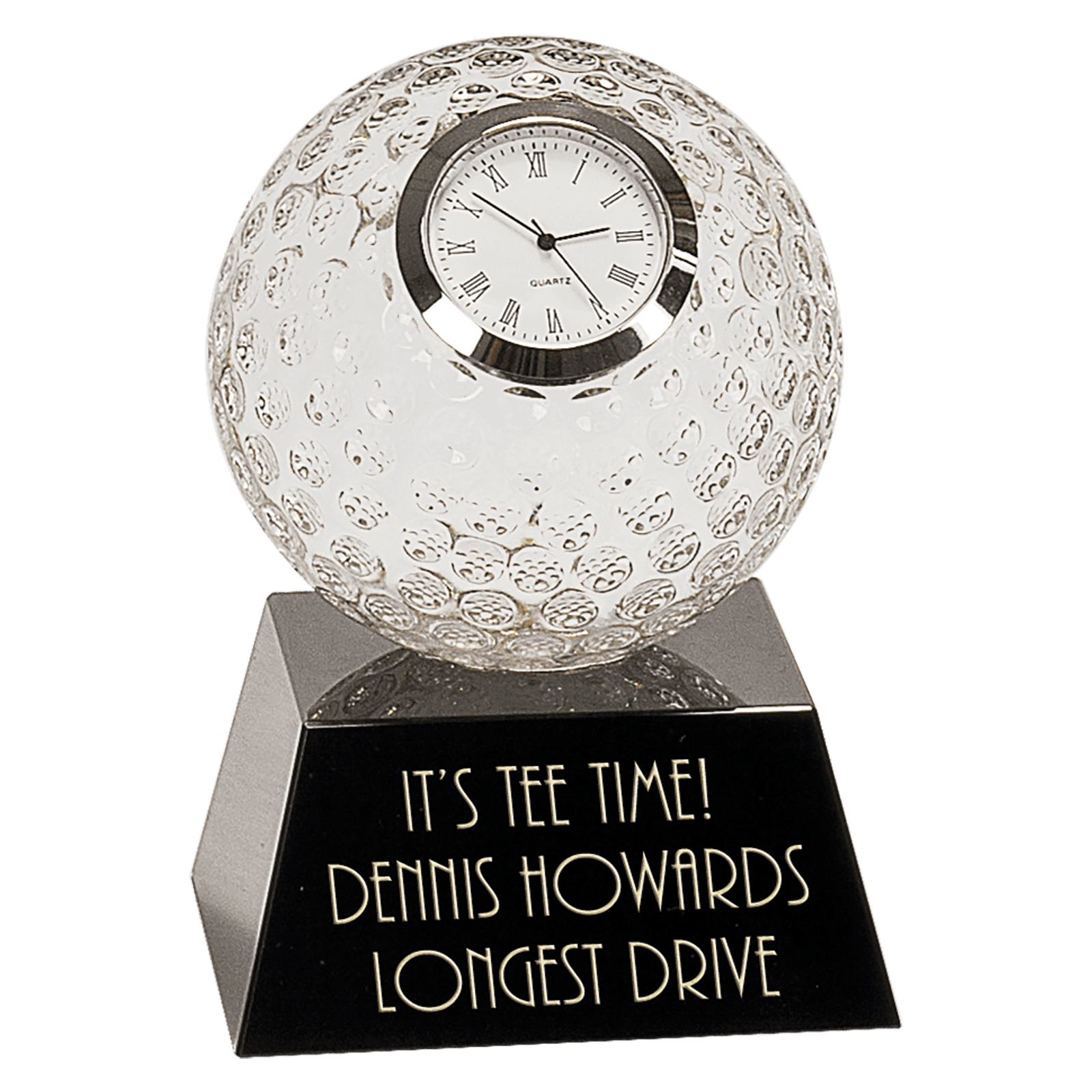 5″ Clear Crystal Golf Ball Clock with Black Pedestal Base