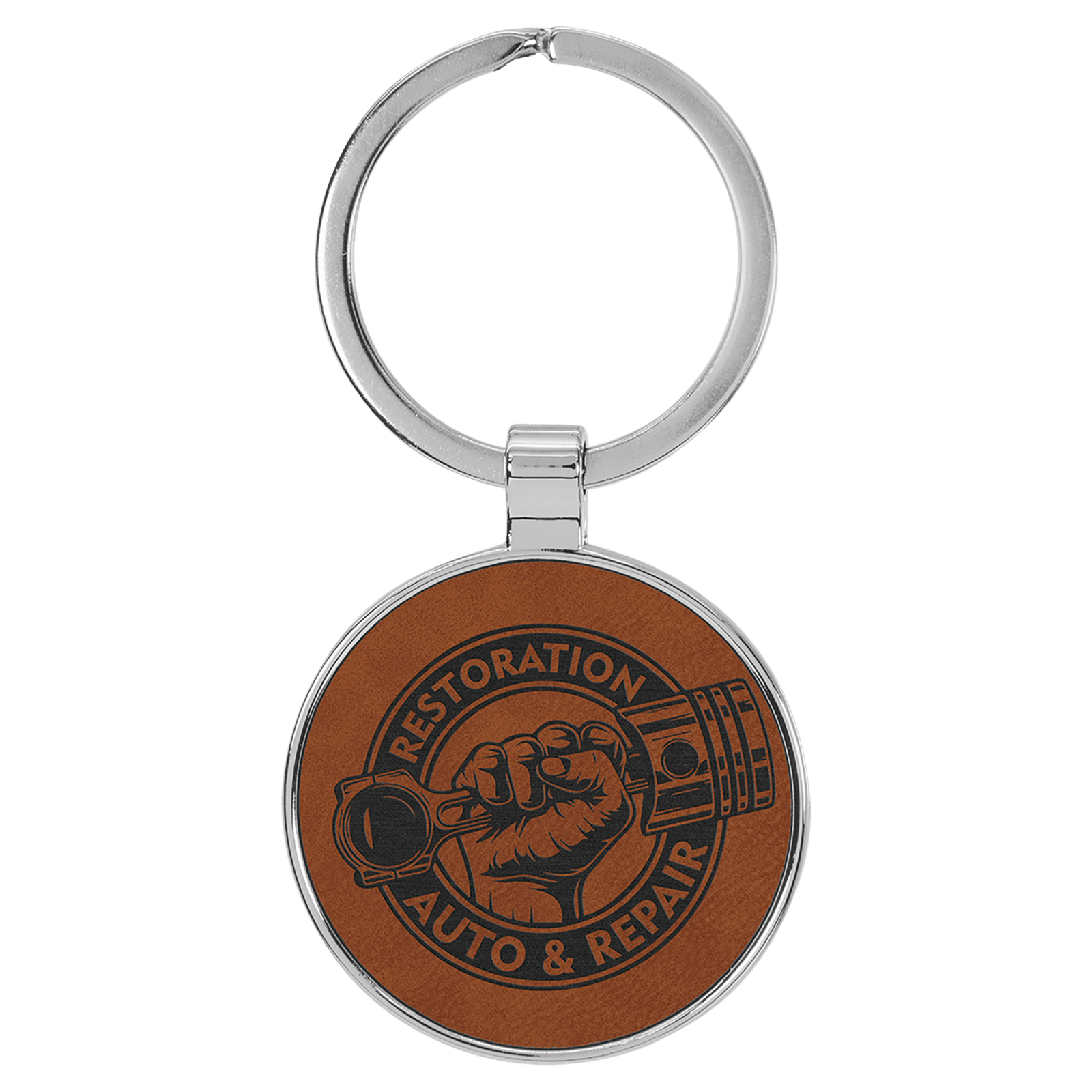 1 1/2″ Laserable Leatherette/Metal Rawhide Round Keychain