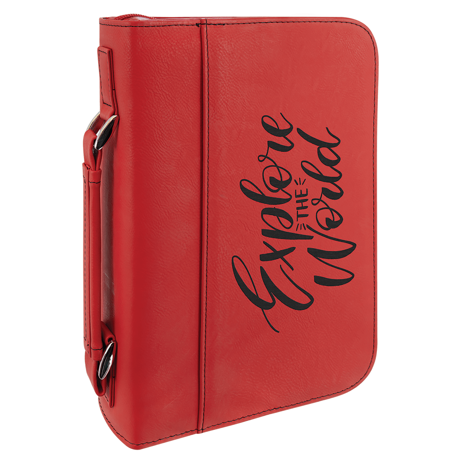 7 1/2″ x 10 3/4″ Red Leatherette Book/Bible Cover with Handle and Zipper