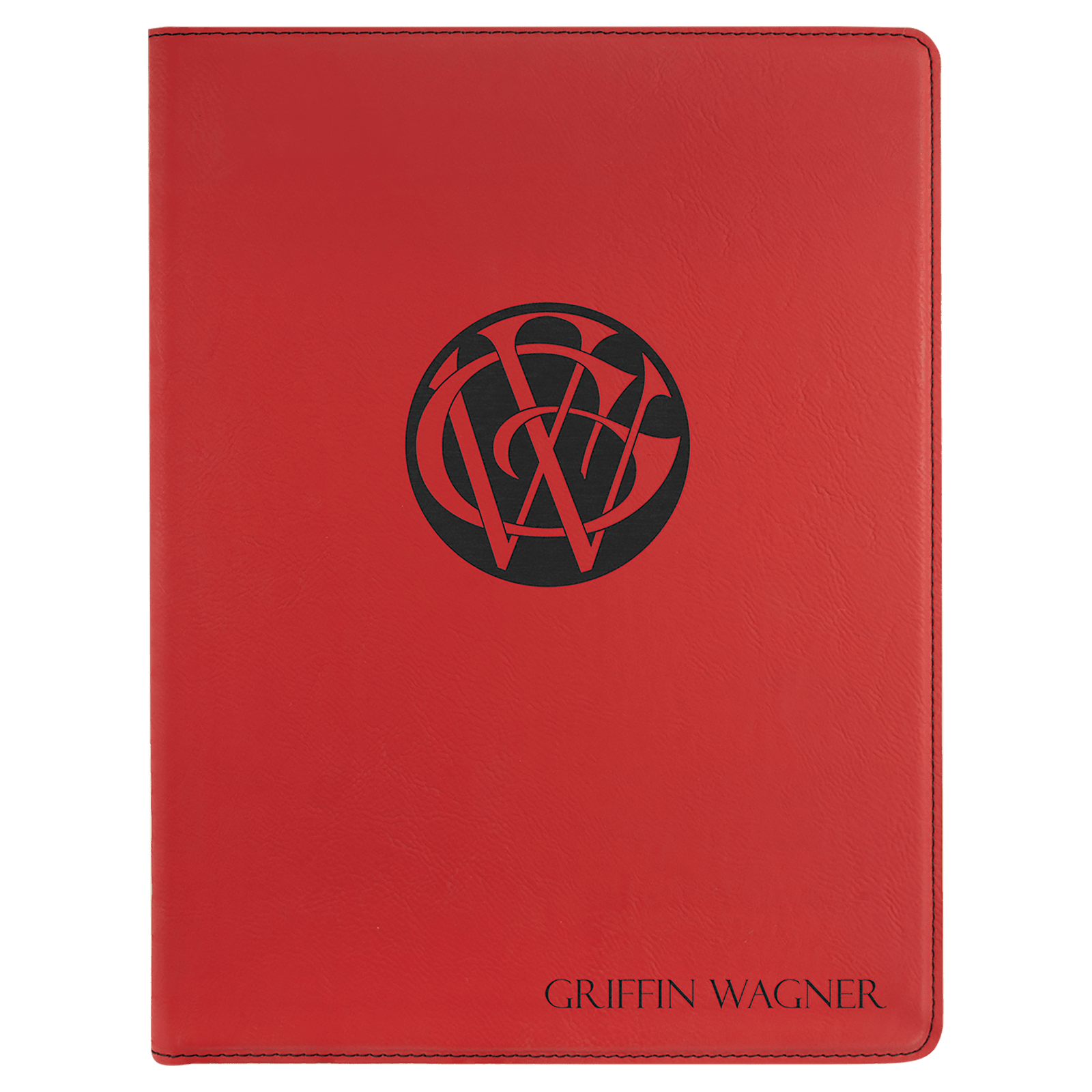 9 1/2″ x 12″ Red Laserable Leatherette Portfolio with Notepad