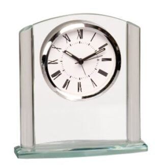 7″ Glass Desk Clock with Rosewood Finish Bevel Columns