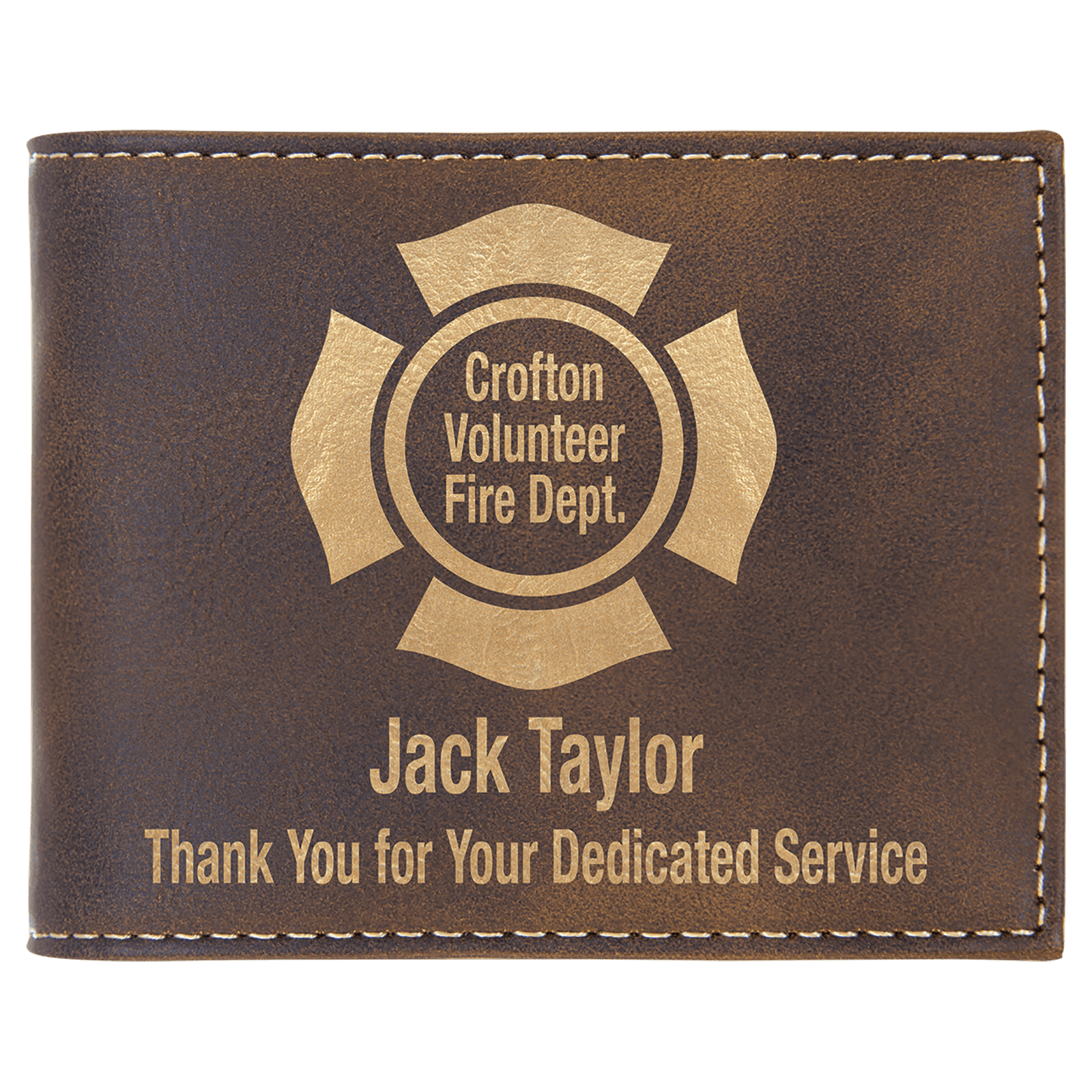 Rustic/Gold Laserable Leatherette Bi-Fold Wallet w/Flip ID Display