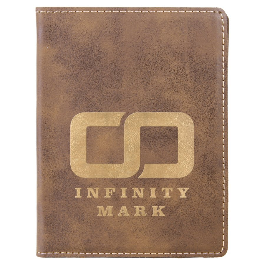 4 1/4″ x 5 1/2″ Rustic/Gold Laserable Leatherette Passport Holder