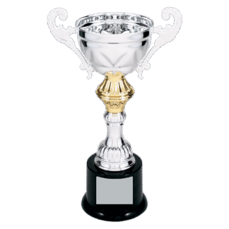 10″ Silver Completed Metal Cup Trophy on Plastic Base