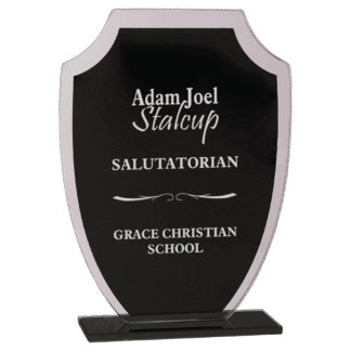 Engraved Personalized Small Gateway Jade Clip Corner Glass Award with Rosewood Finish Base – custom made just for you.