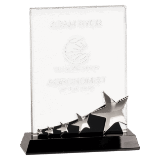7″ Rectangle Crystal with Silver Stars on Black Pedestal Base